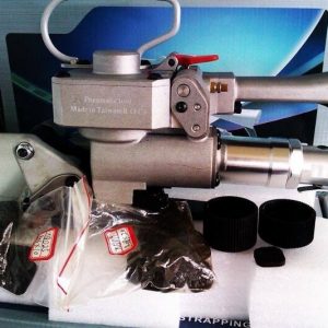 Máy đóng đai nhựa (PP, PET) Model XQD-19. Đóng đai nhựa dùng khí nén ma sát, hàn nhiệt dây đai, chức năng 3 trong 1 (Siết, hàn nhiệt, cắt dây đai) cùng lúc.